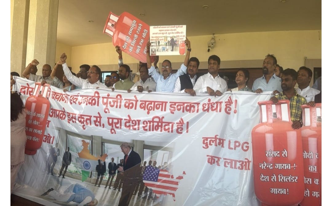 प्रदर्शन के दौरान विधायकों के हाथों में जो पोस्टर थे, उनमें लिखा था – “संसद से नरेंद्र गायब, देश से सिलेंडर गायब।” कुछ पोस्टरों में अमेरिका के राष्ट्रपति डोनाल्ड ट्रंप की तस्वीर भी लगी थी, जिसमें प्रधानमंत्री नरेंद्र मोदी उनके सामने सिर झुकाकर प्रणाम करते हुए दिखाई दे रहे हैं।