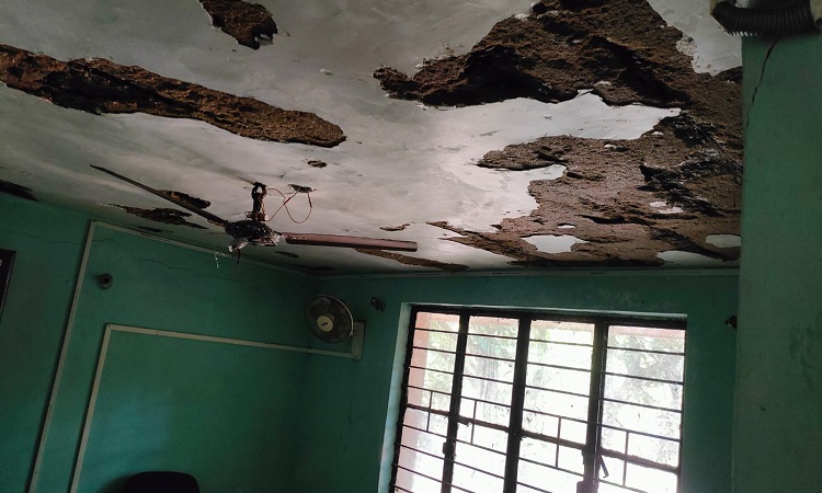 AJSU: छज्जे से प्लास्टर टूट कर गिरता रहता है